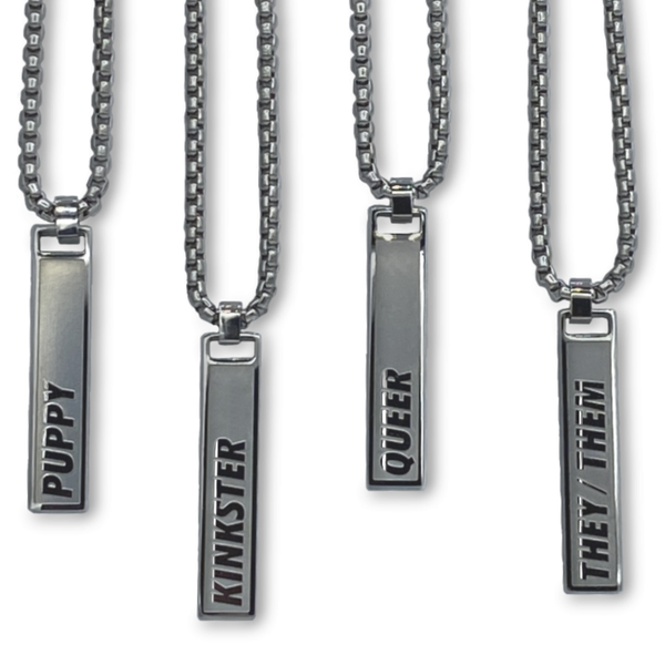 Our modern and sleek bar design features the gender-neutral pronoun "They/Them" in bold engraved letters.