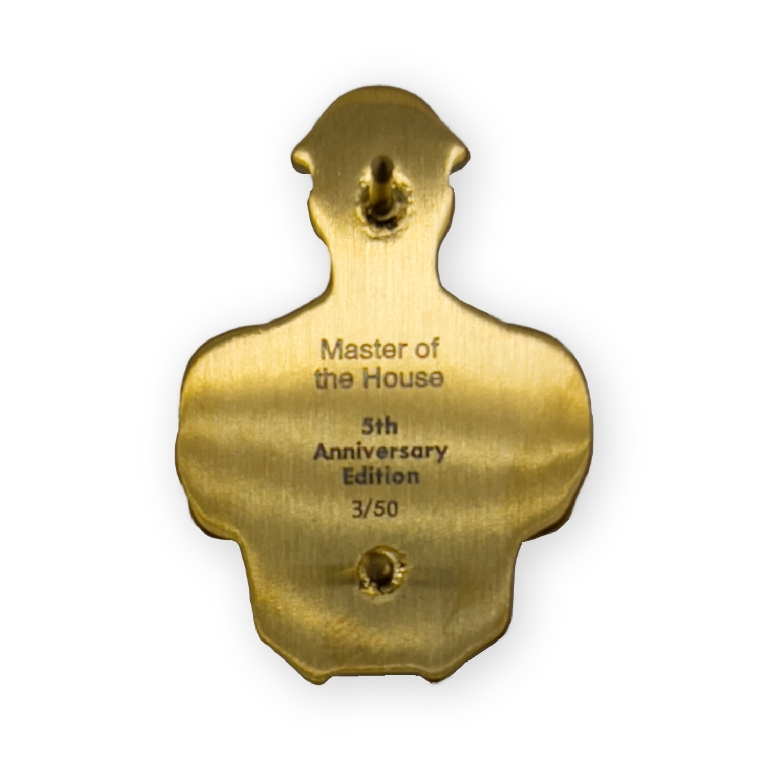 Celebrate our 5th Anniversary in style with this ultra-exclusive limited edition pin from Master of the House. Expertly crafted with an 18 carat gold plating and brought to life in stunning 3D detail, this pin features our iconic "Master" design. With only 50 pieces produced, this pin is an incredibly rare collector's item. Each pin is individually numbered with laser engraving on the back.