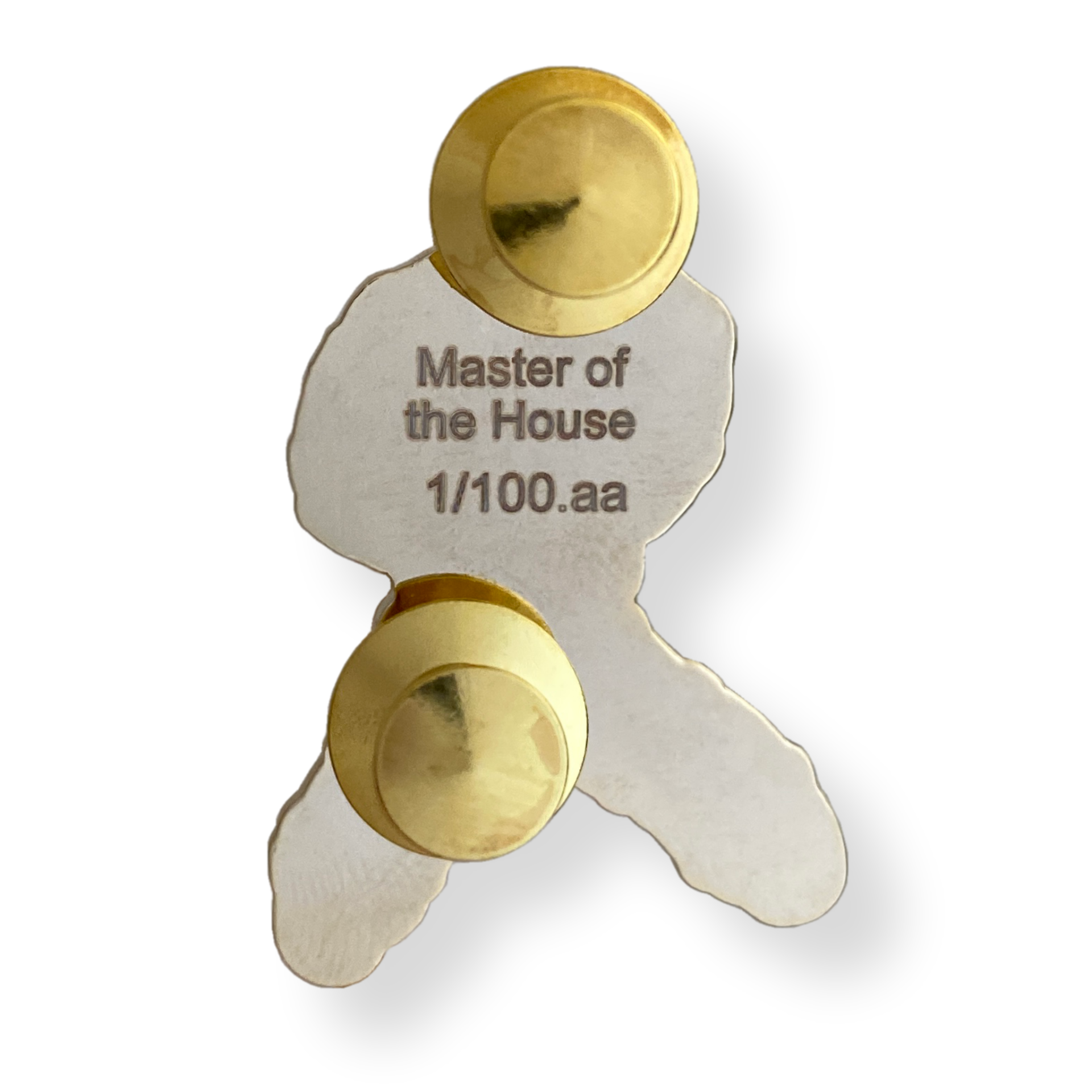 Hard enamel pin in gold tone and matte black detailing. It's 3,5cm high and has two safety closures. All pins have branding and a unique serial number laser-engraved on the back and are crafted in limited edition.