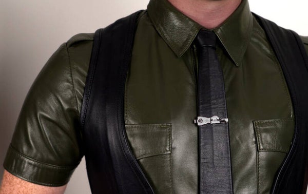 The newest Tie Clip design depicting a classic leather man. You may call him Sir and worship those boots.